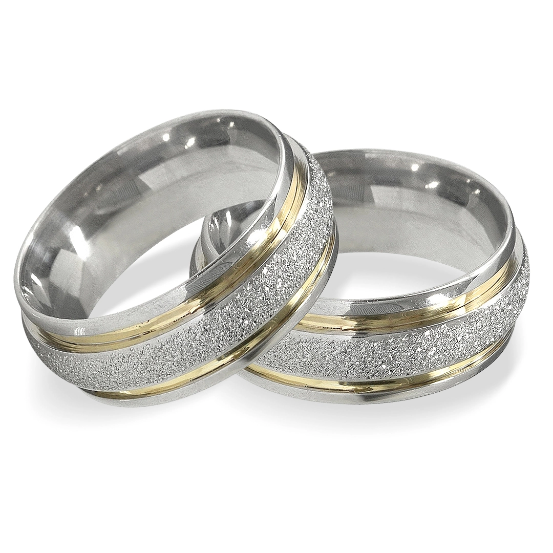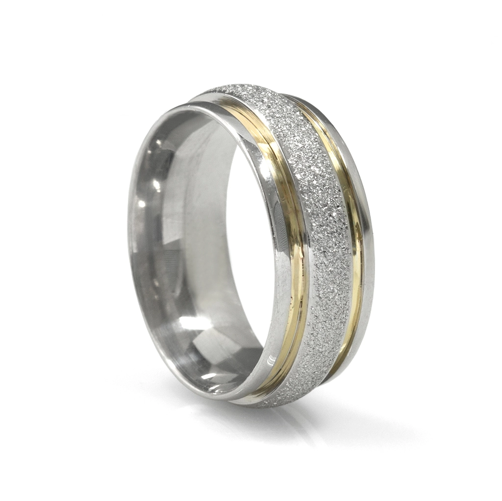 Aliança de Namoro em Aço Diamantada com Filetes em Ouro