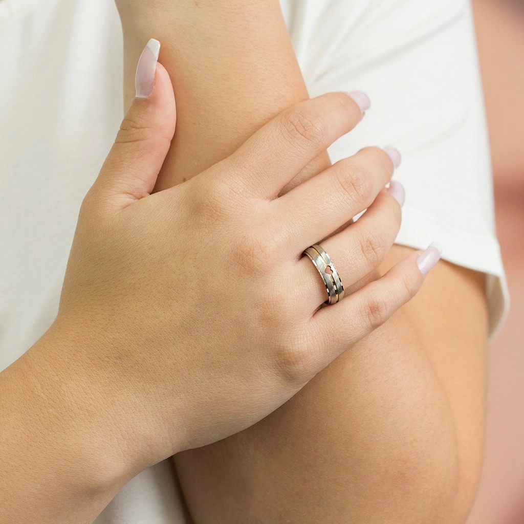 Aliança de Namoro em Aço e Ouro Gaia Heart