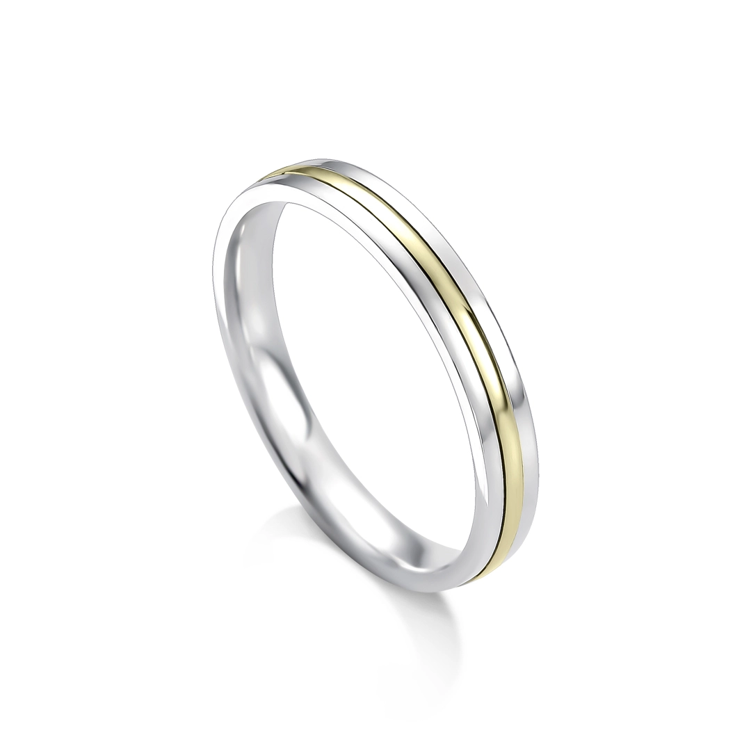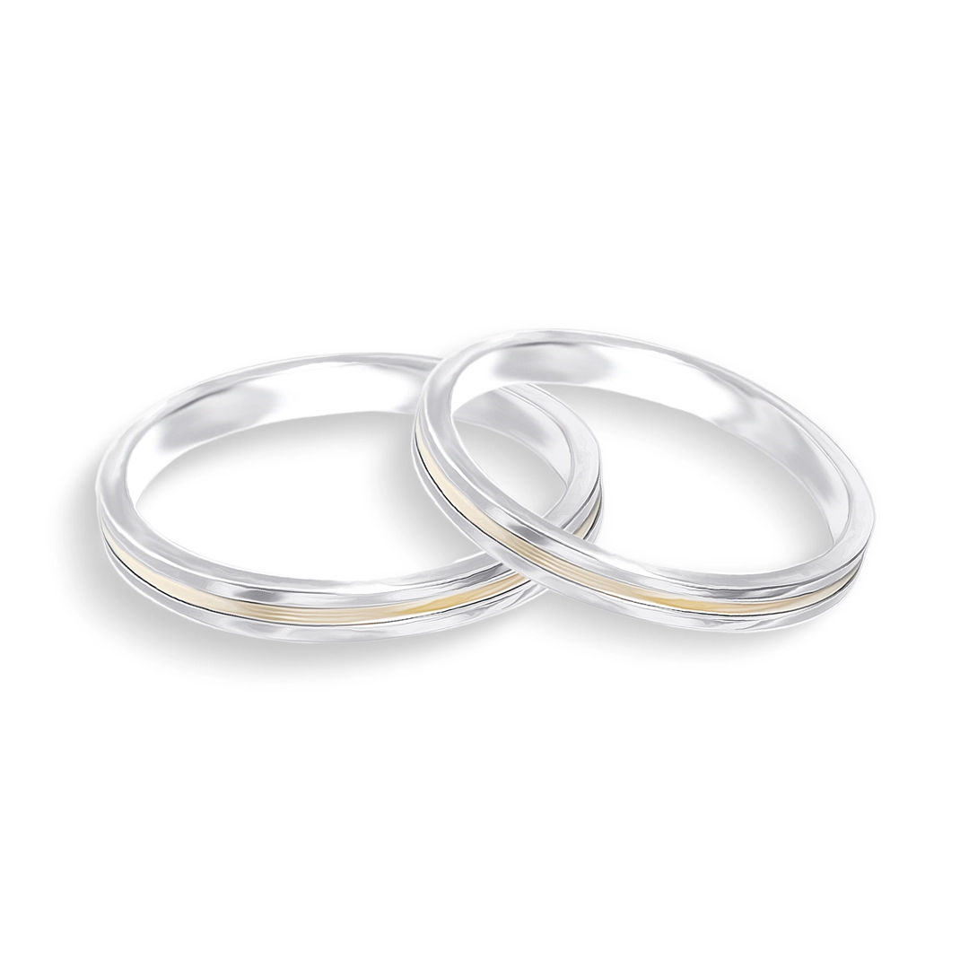 Aliança De Namoro Em Prata Com Filete De Ouro