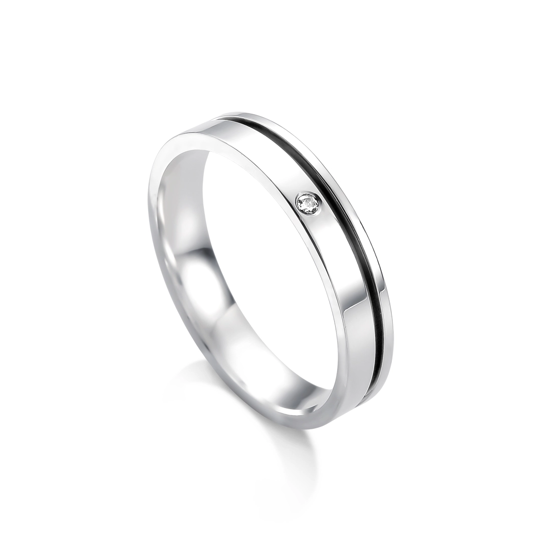 Aliança levemente anatômica com friso envelhecido na lateral e uma zircônia cristal.