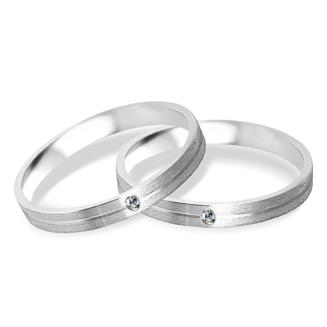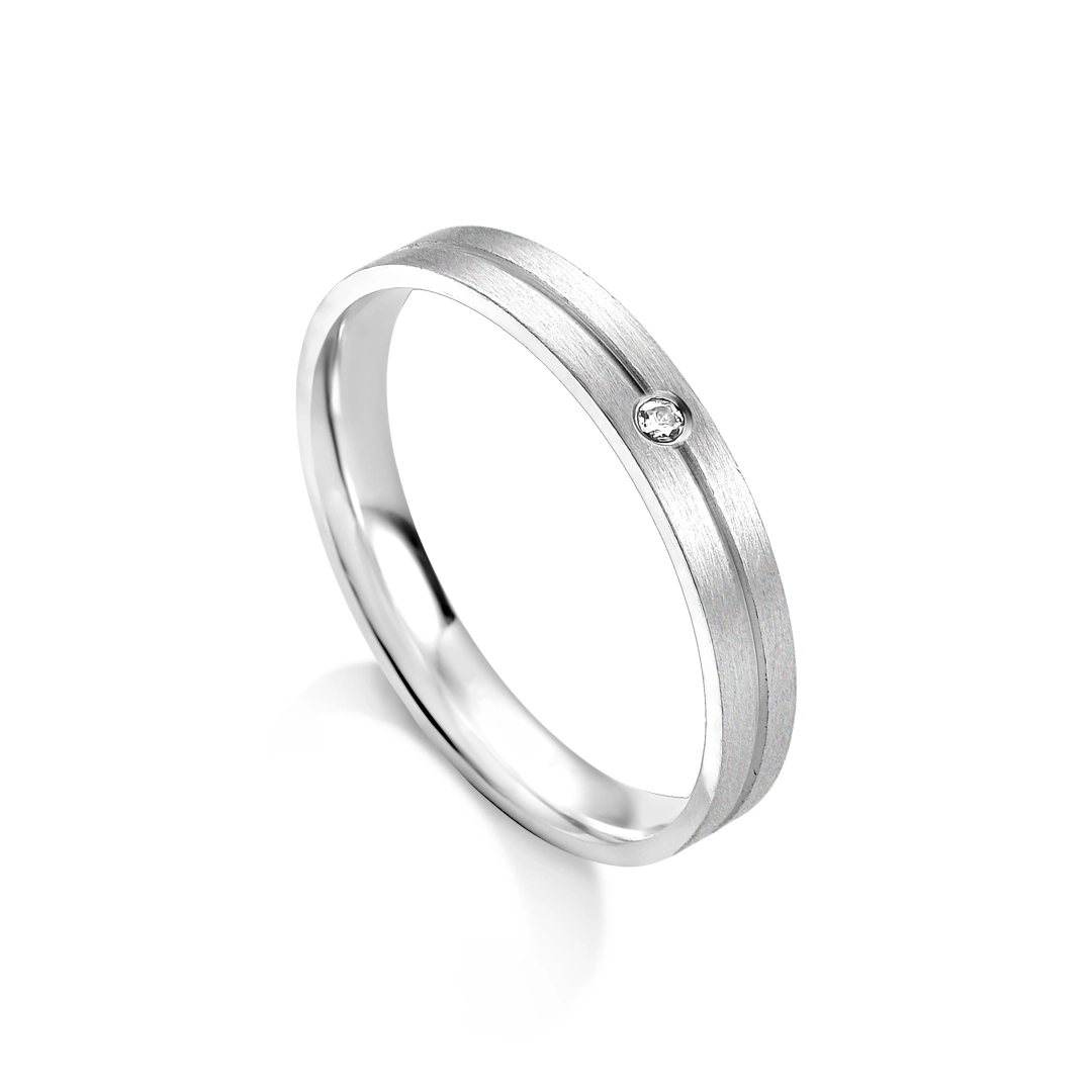 Aliança de Prata Acetinada com Friso Espelhado e Zircônia