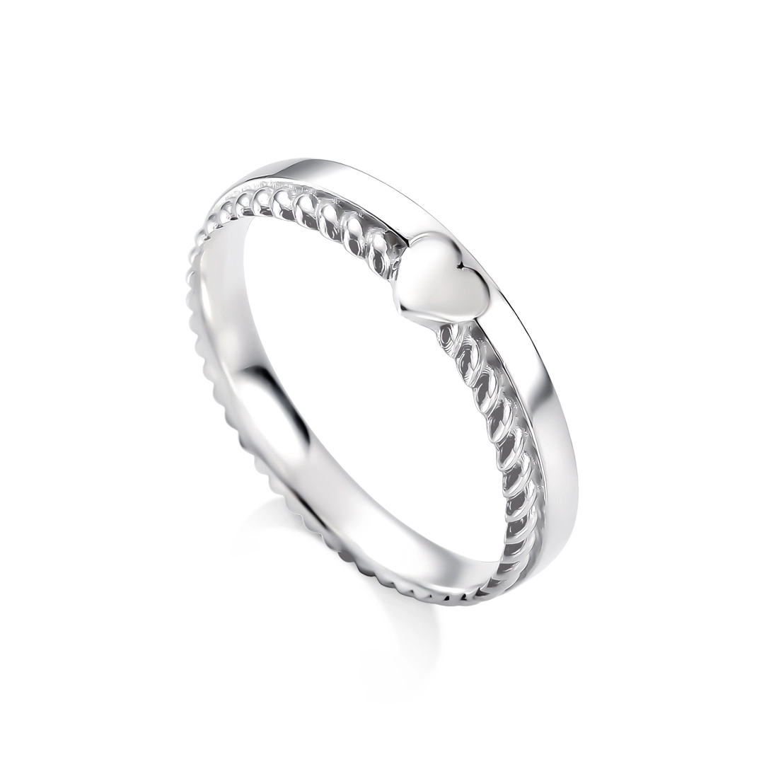 Aliança de Prata com Borda Trabalhada e Coração Espelhado