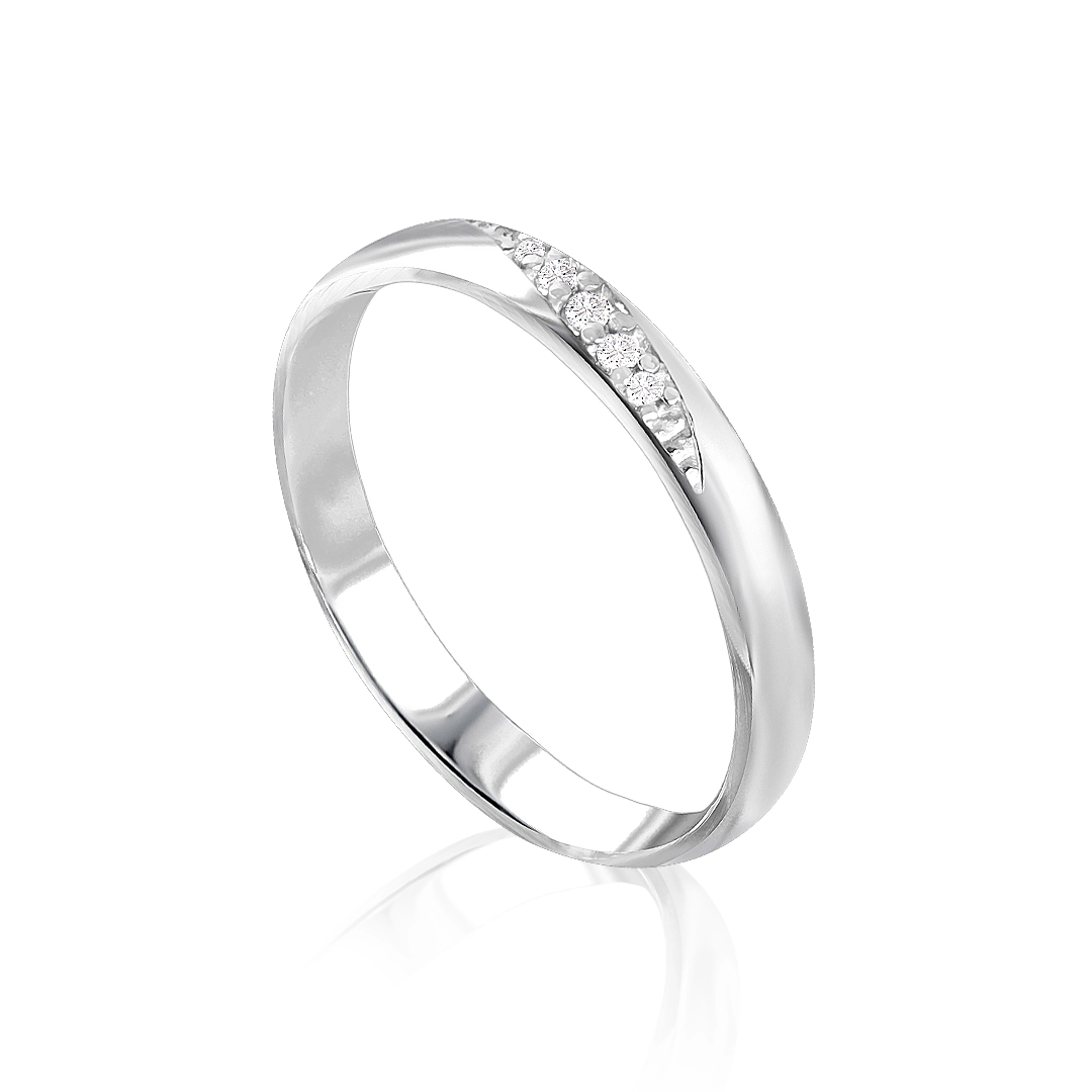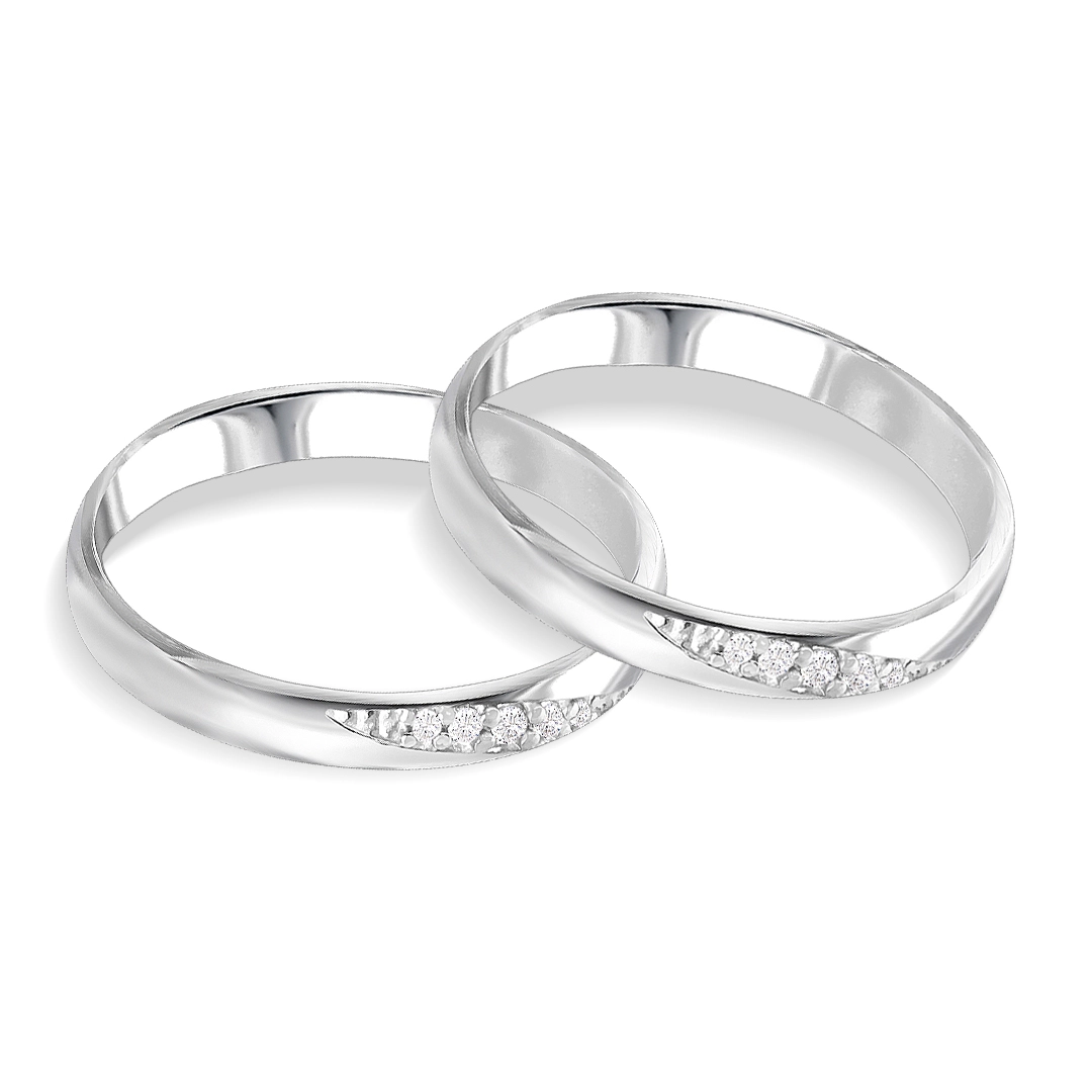 Aliança espelhada levemente anatômica com zircônias cristal na diagonal.
