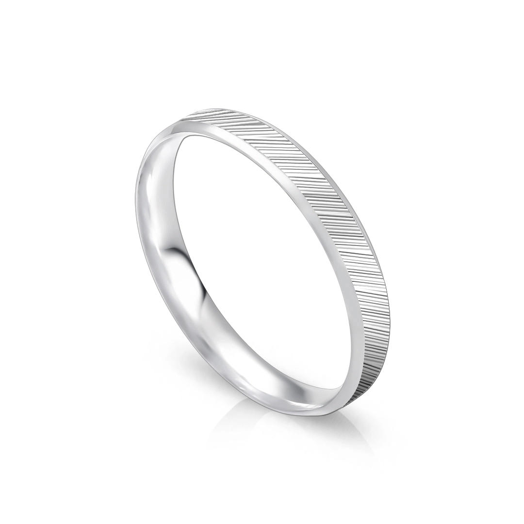 Aliança espelhada levemente anatômica com trabalhado de riscas.