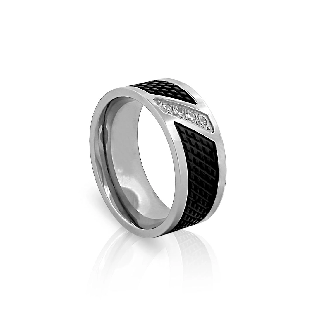 Anel de Aço com Fibra de Carbono Bordas Espelhadas e Zircônias Cristal