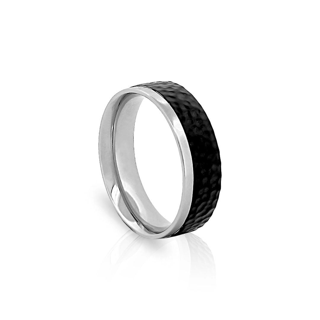 Anel espelhado com trabalhado martelado em fibra de carbono.
