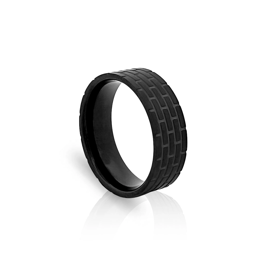 Anel em fibra de carbono com trabalhado estilo tijolo.