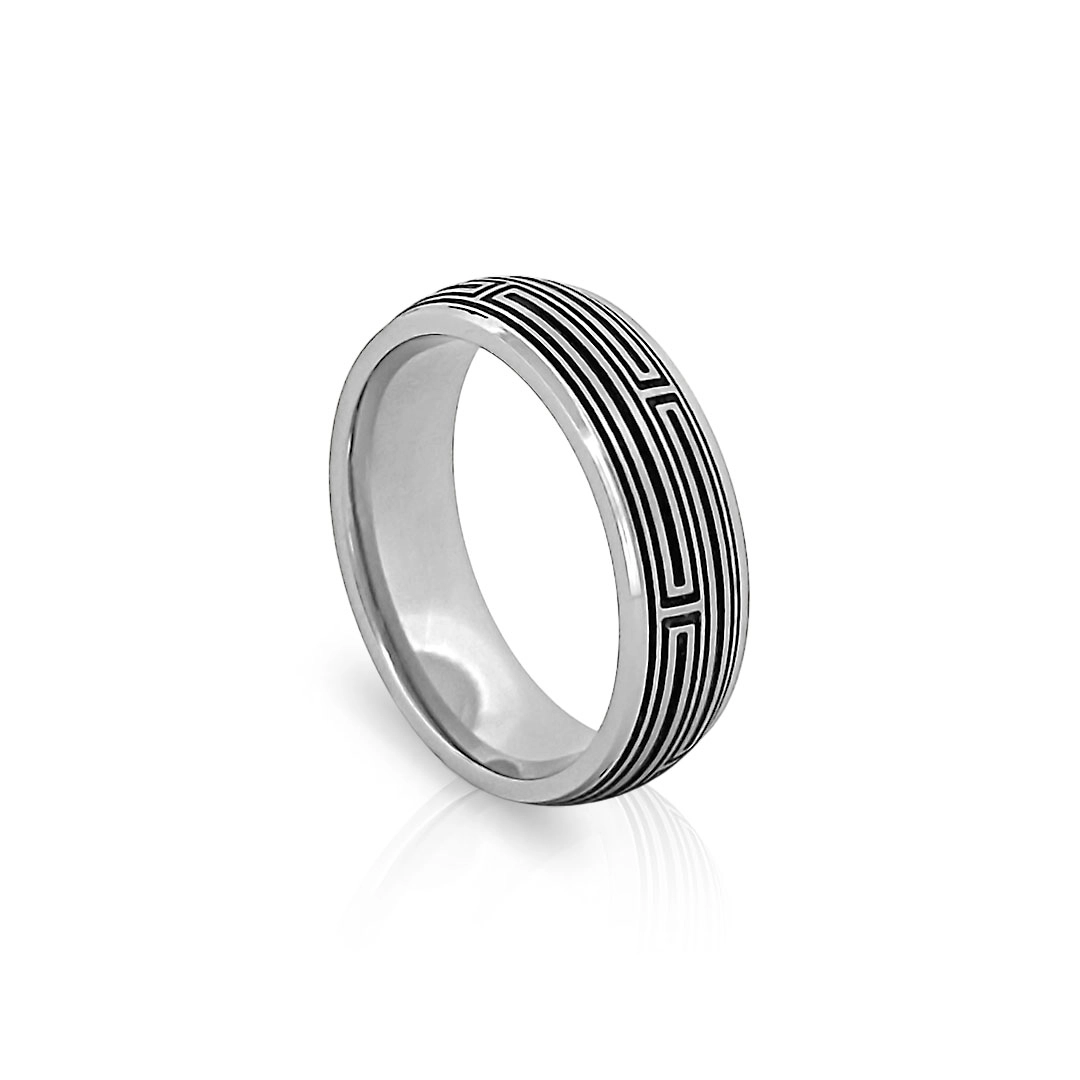 Anel espelhado com trabalhado de labirinto em fibra de carbono.