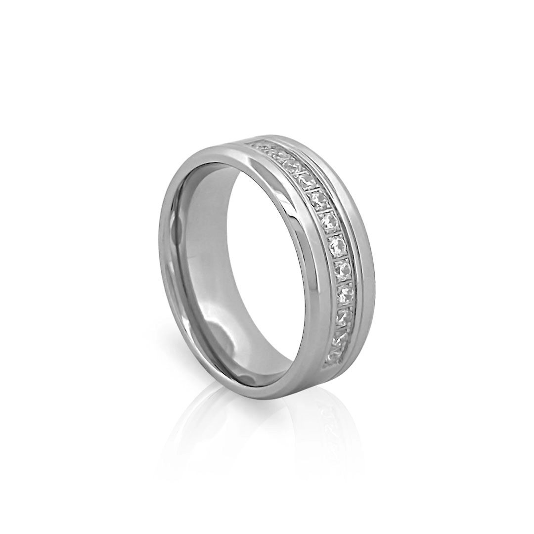 Brinco de Aço Argola Clic Trabalhada com Zircônias Cristal