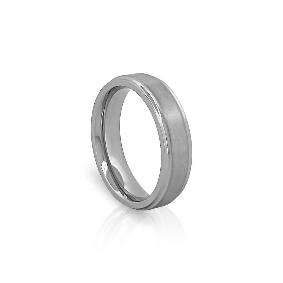 Anel de aço fosco com bordas espelhadas.