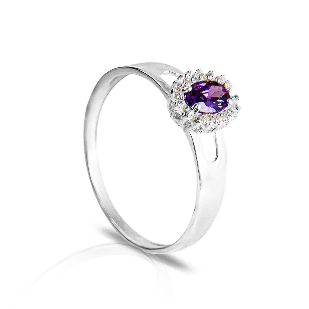 Anel De Formatura Em Prata com Detalhe Vazado e Zircônia Ametista