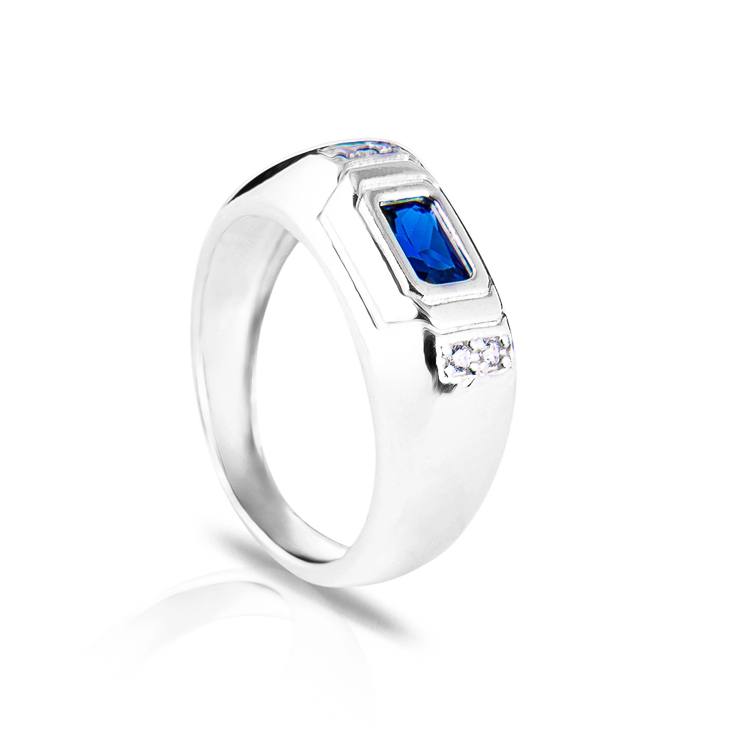 Anel De Formatura Em Prata Com Zircônia Safira Retangular E Zircônia Cristal
