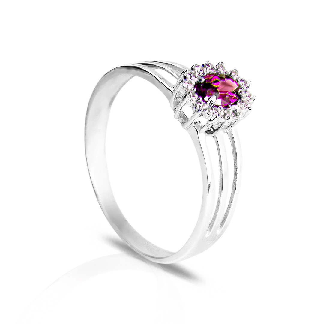Anel De Formatura Em Prata Três Fios Com Zircônia Rubi Oval E Zircônias Cristal