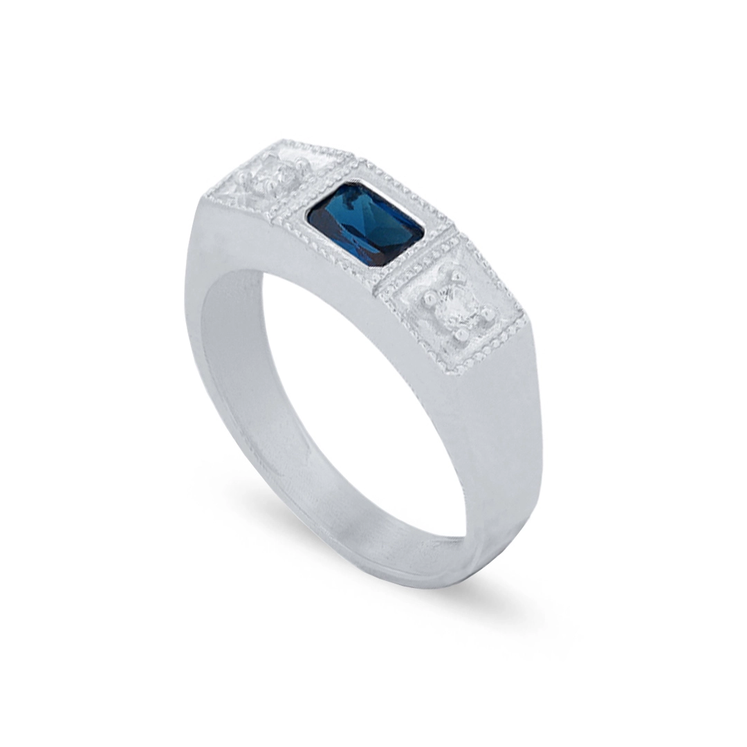 Anel De Formatura Em Prata Com Zircônia Safira Retangular E Zircônias Cristal
