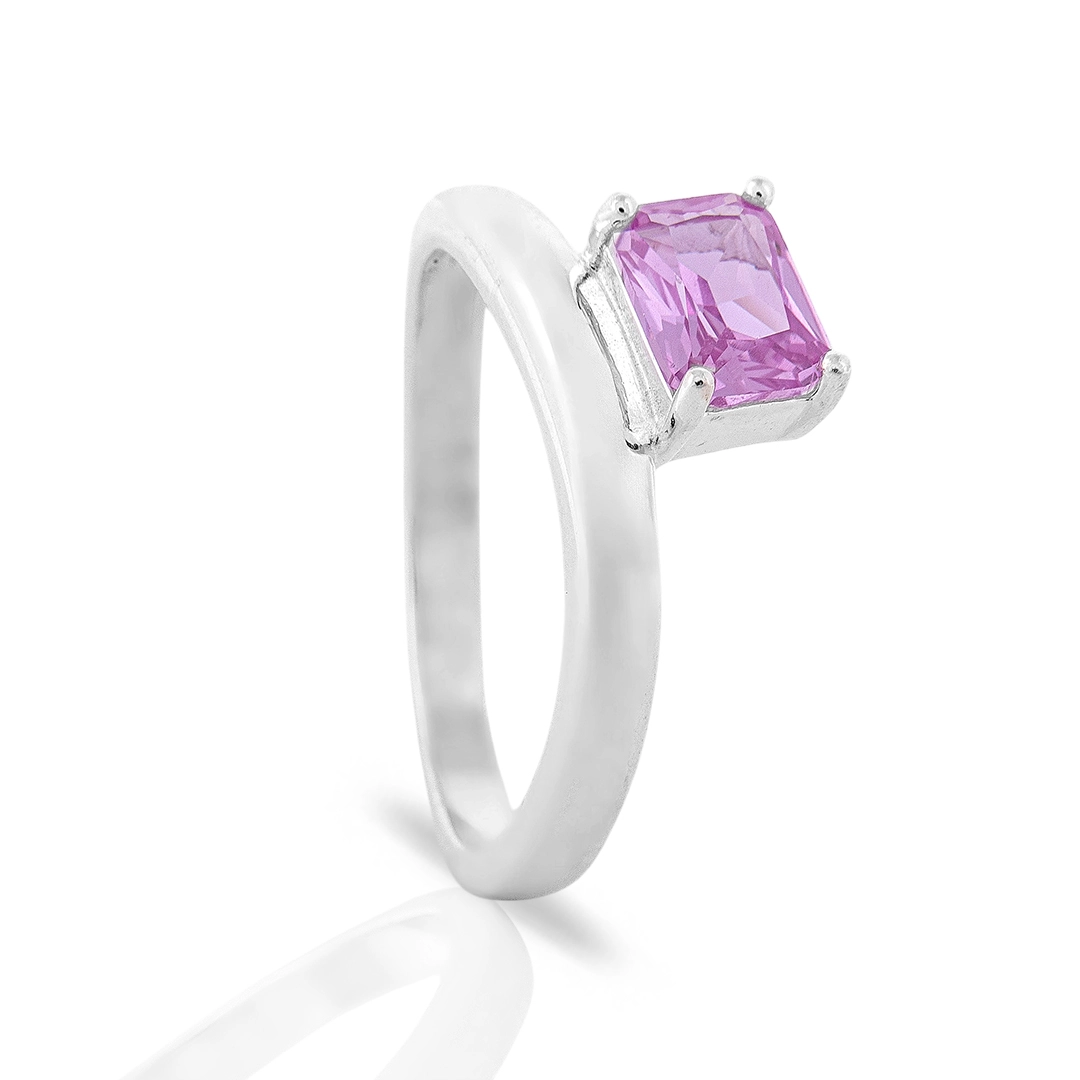 Anel de Prata Blend Collection com Zircônia Rosa Retangular