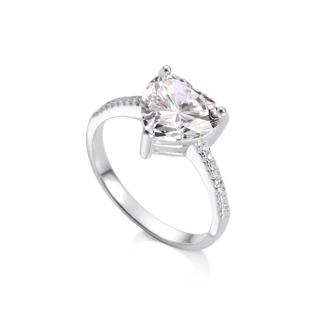 Anel espelhado com zircônia cristal em formato coração.