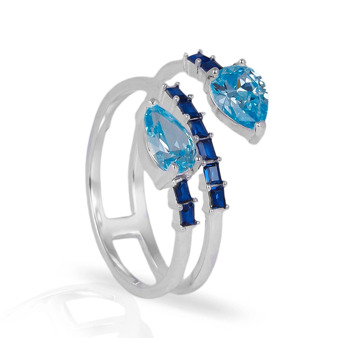 Anel de Prata Blend Collection Três Fios com Zircônias Topázio e Safira