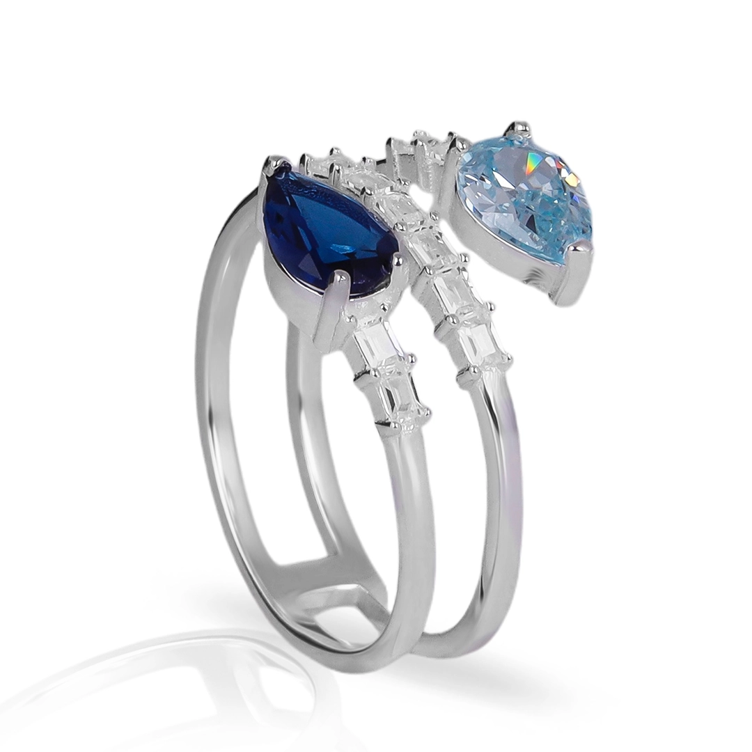Anel de Prata Blend Collection Três Fios com Zircônias Topázio, Safira e Cristal