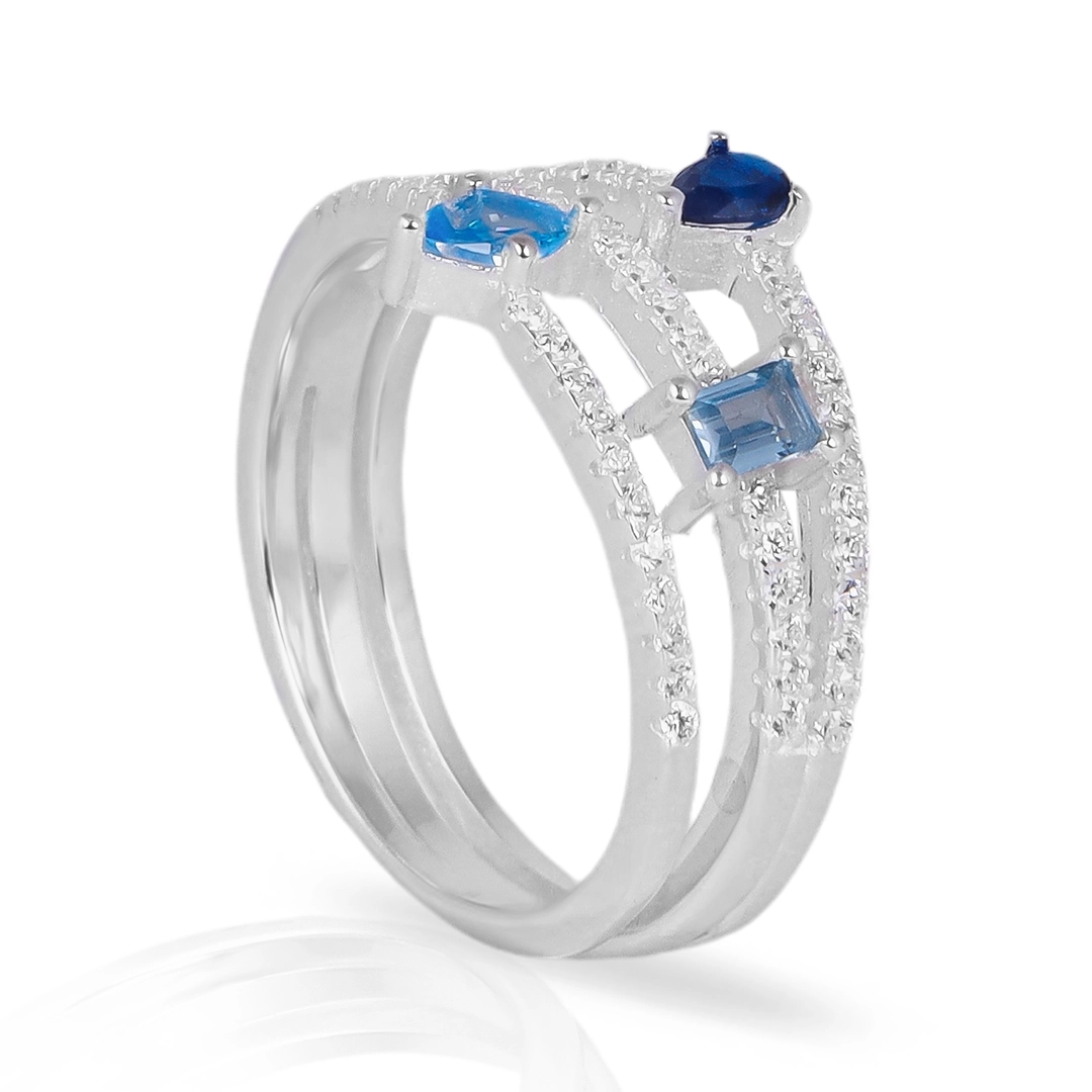 Anel de Prata Blend Collection Triplo com Zircônias Safira e Topázio