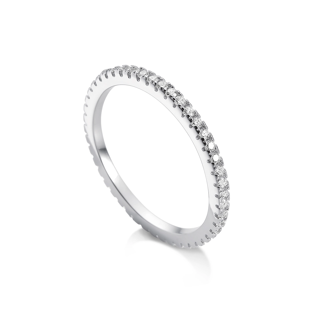 Anel meia-aliança com zircônias cravejadas em todo o aro.