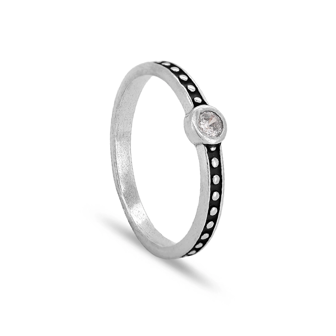 Anel De Prata Envelhecido Com Pontos Espelhados
