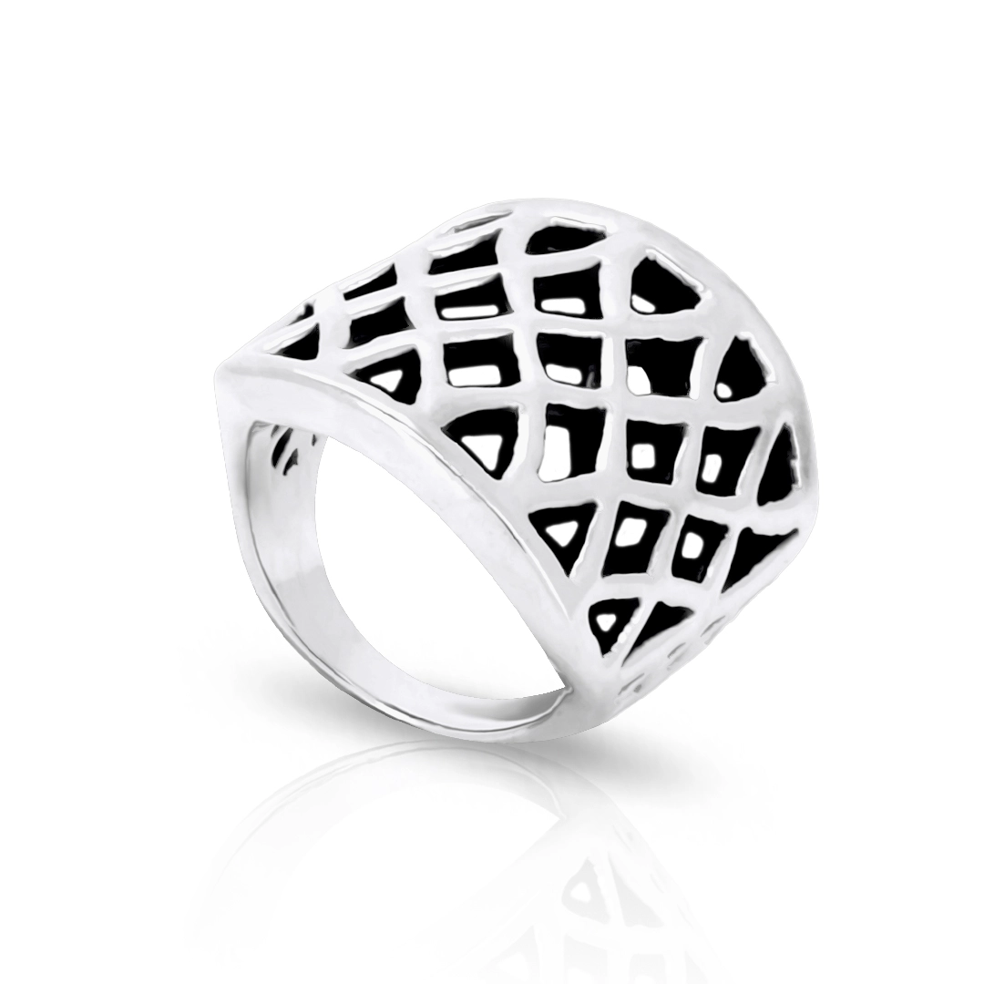 Anel em formato quadrado com trabalhado vazado.