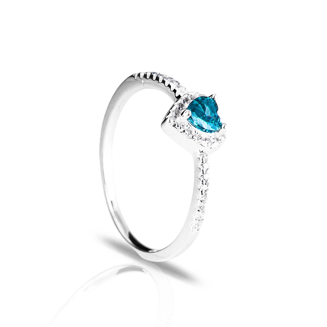 Anel de Prata Espelhado com Coração em Zircônia Topázio
