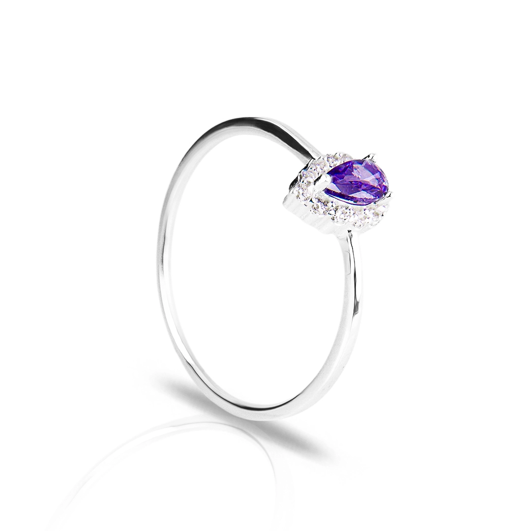 Anel de Prata Espelhado com Gota em Zircônia Ametista