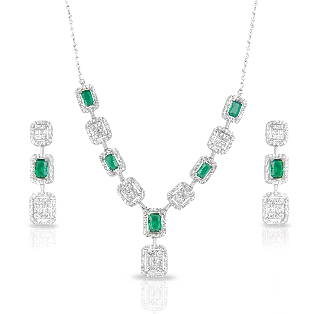 Anel solitário espelhado com gota em zircônias cristal e esmeralda.