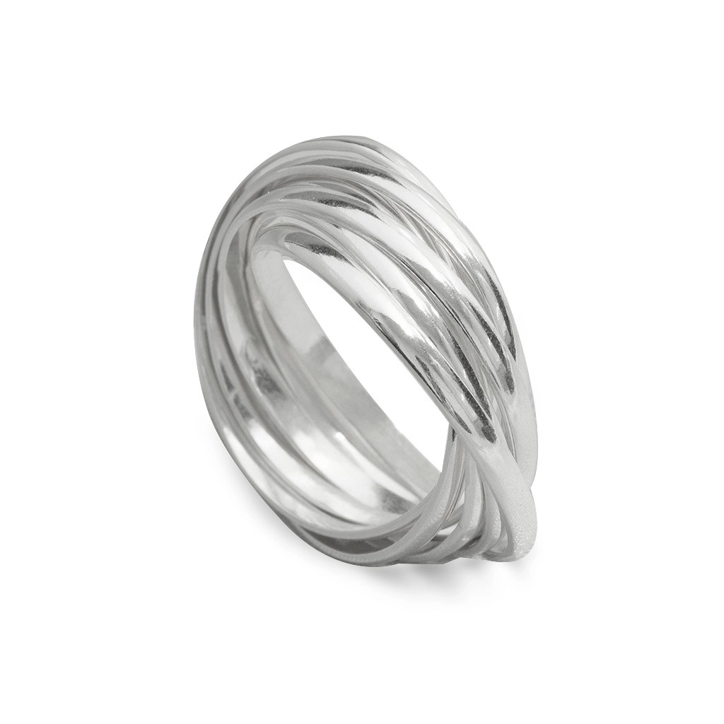 Anel feminino sete fios com acabamento espelhado que oferece brilho intenso e elegante.
