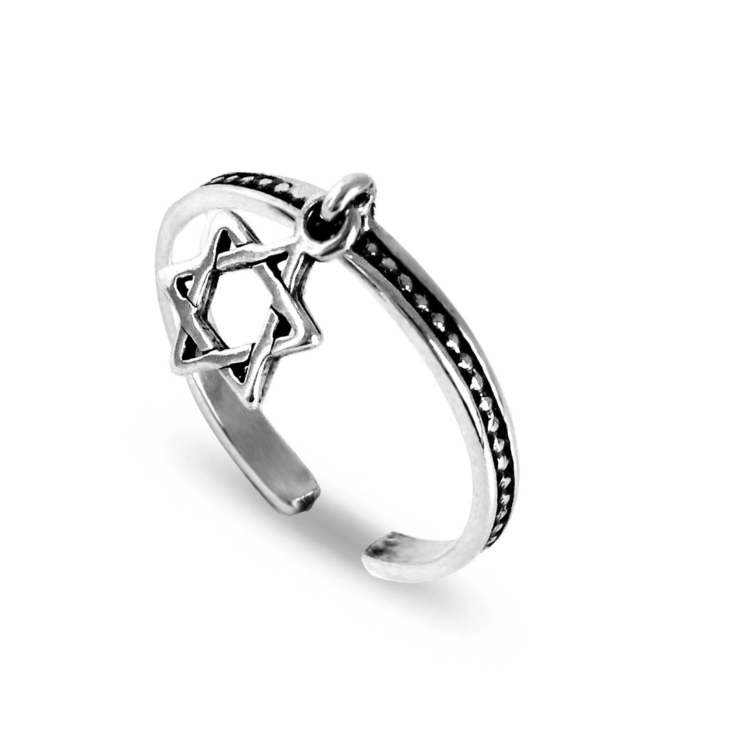 Anel de Prata Falange Envelhecido com Estrela de Davi