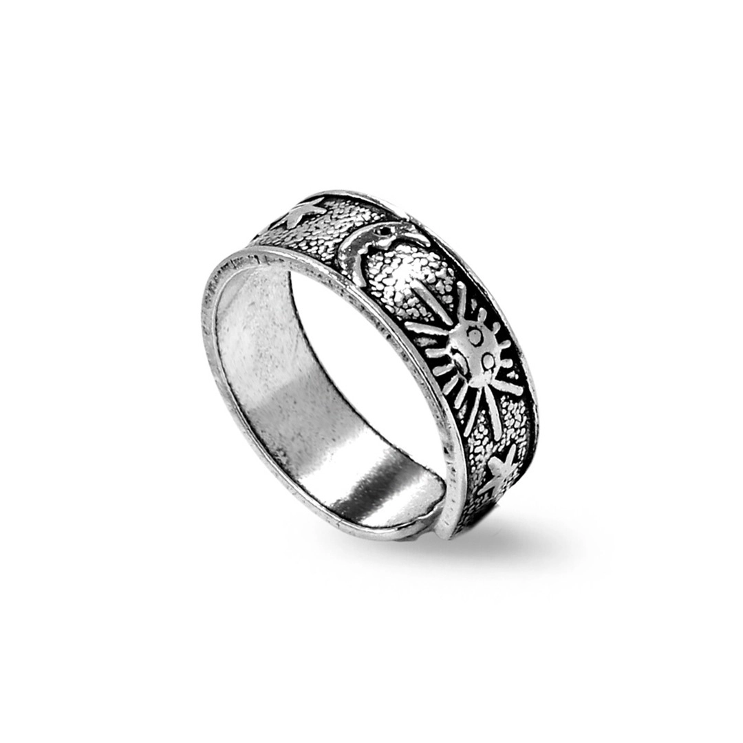 Anel de Prata Falange Envelhecido com Sol, Lua e Estrelas