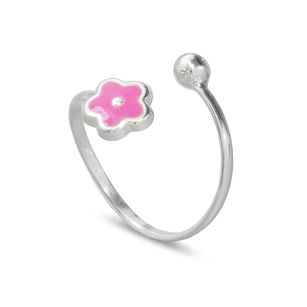 Anel de Prata Infantil Regulável com Flor Rosa