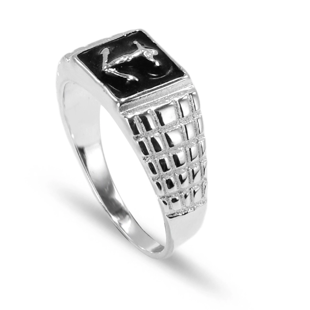Anel de Prata Masculino com Resina Preta e Âncora Espelhada