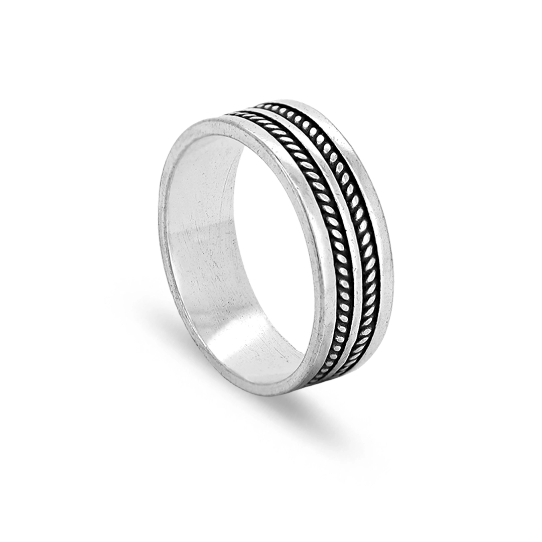 Anel De Prata Masculino Trabalhado E Envelhecido