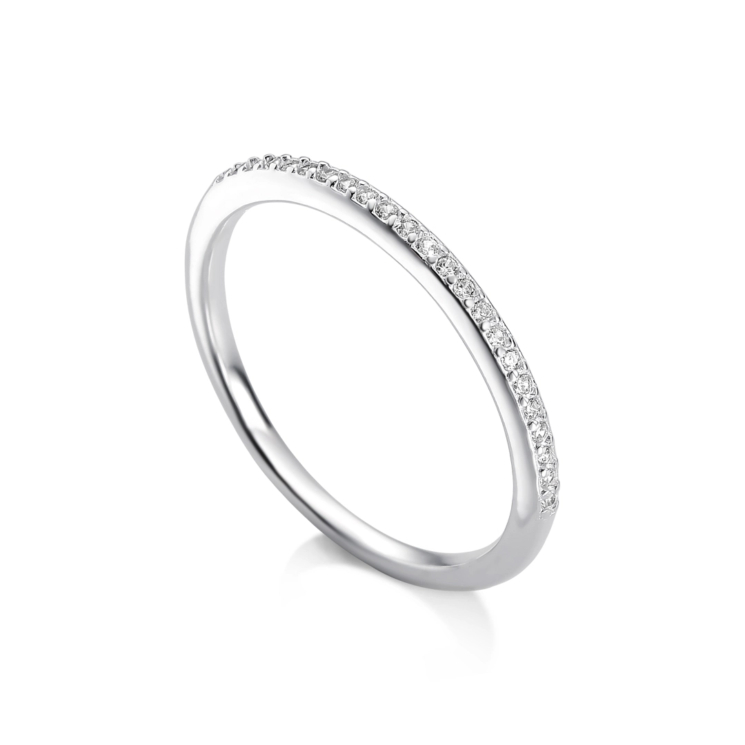 Anel de Prata Meia-Aliança com Zircônias Cravejadas