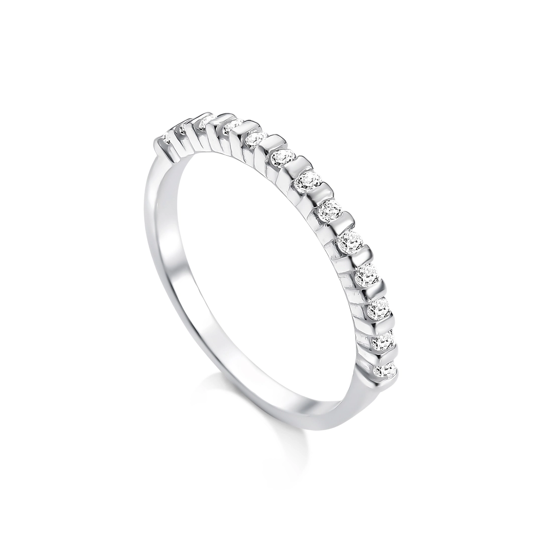 Anel De Prata Meia-Aliança com Zircônias Cravejadas