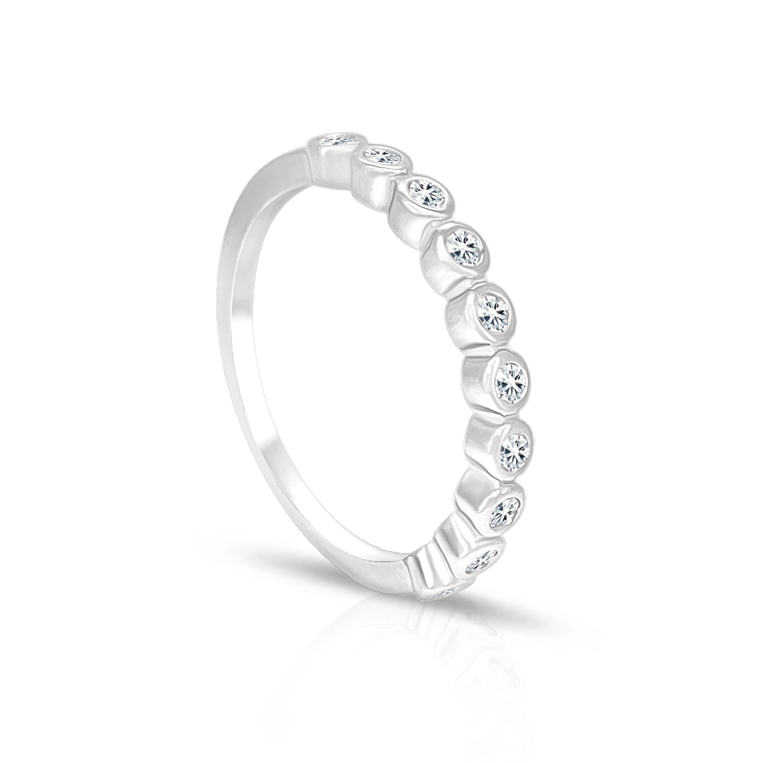 Anel de Prata Meia-Aliança com Zircônias Redondas