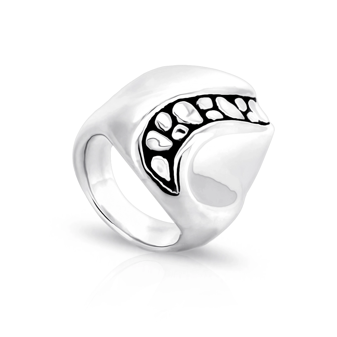 Joia em prata legítima, que faz parte da Curadoria especial de Lilian Miranda, e desenvolvida pelo processo de eletroformação. A técnica é italiana e permite que a produção de joias mais volumosas seja feita com menor quantidade de metal, o que garante conforto e elegância.