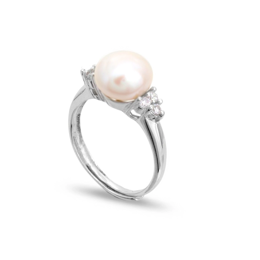 Anel de Prata Regulável com Pérola Biwa e Zircônia Cristal