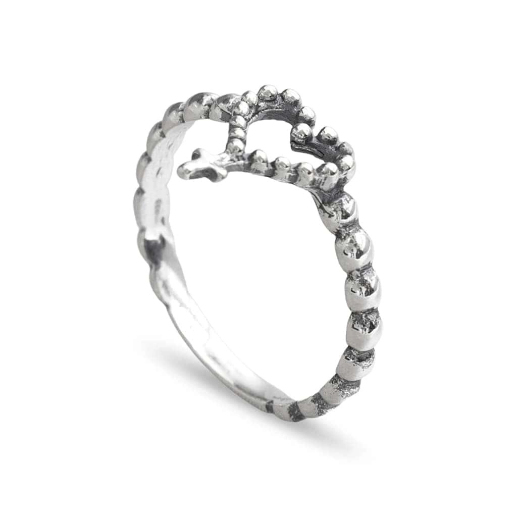 Anel trabalhado de coração com cruz e acabamento envelhecido.