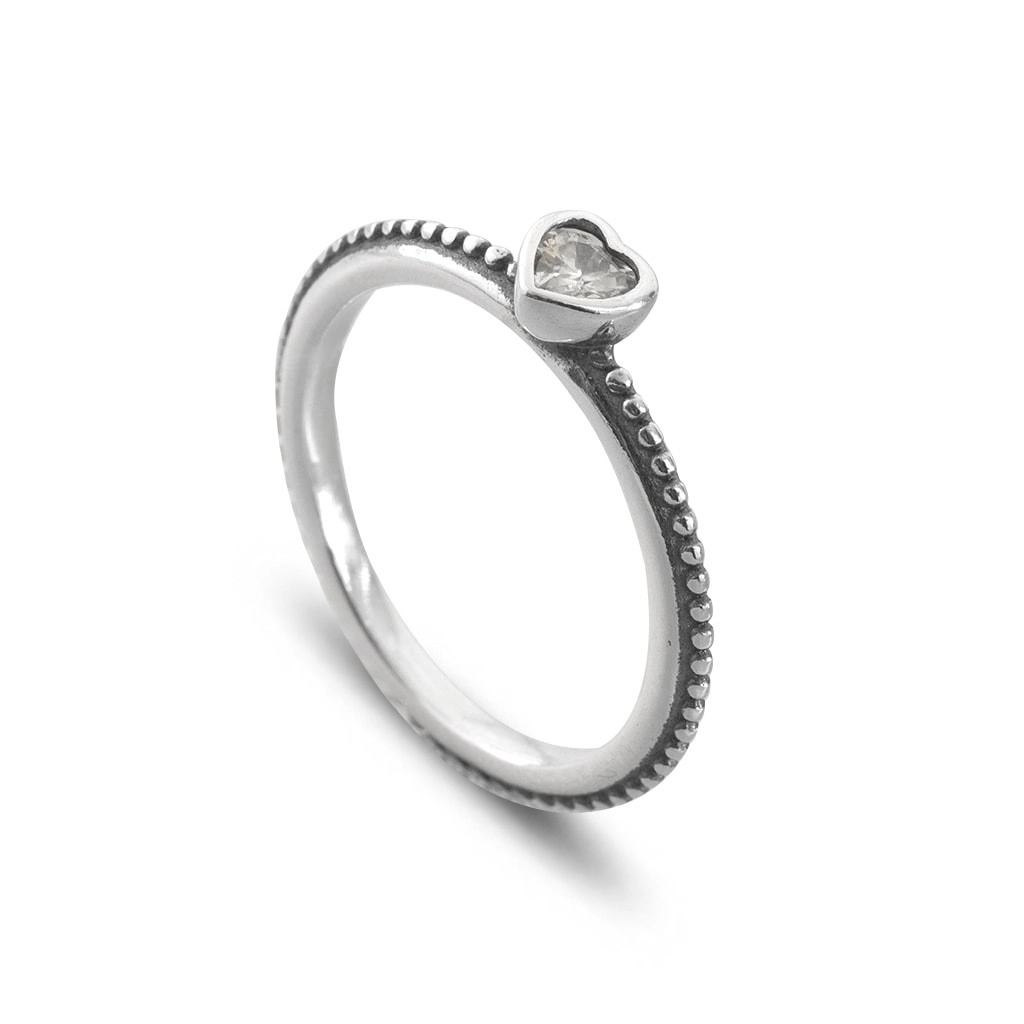 Anel de Prata Trabalhado e Envelhecido com Zircônia Cristal