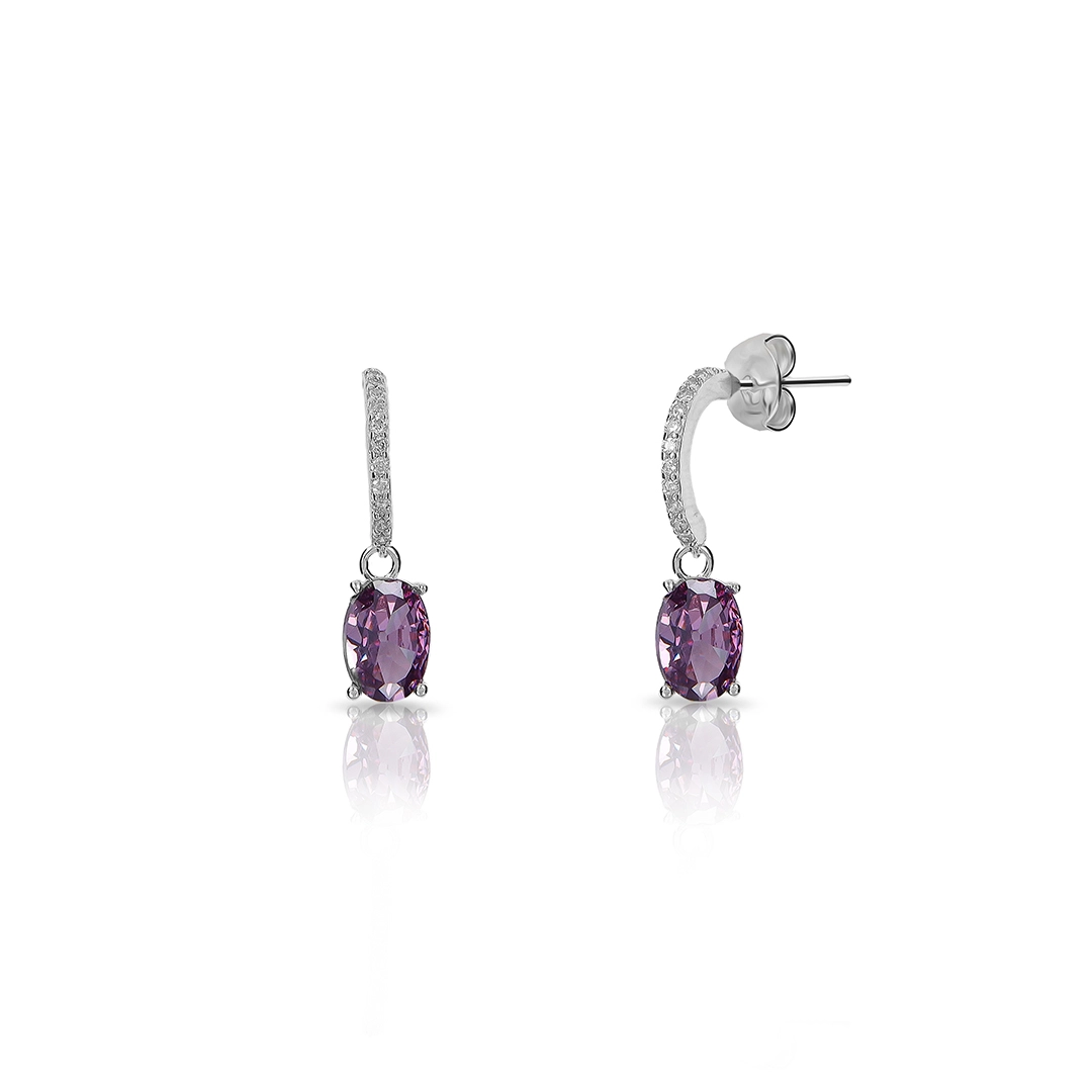 Brinco de Prata Leve Meia Argola com Zircônia Ametista