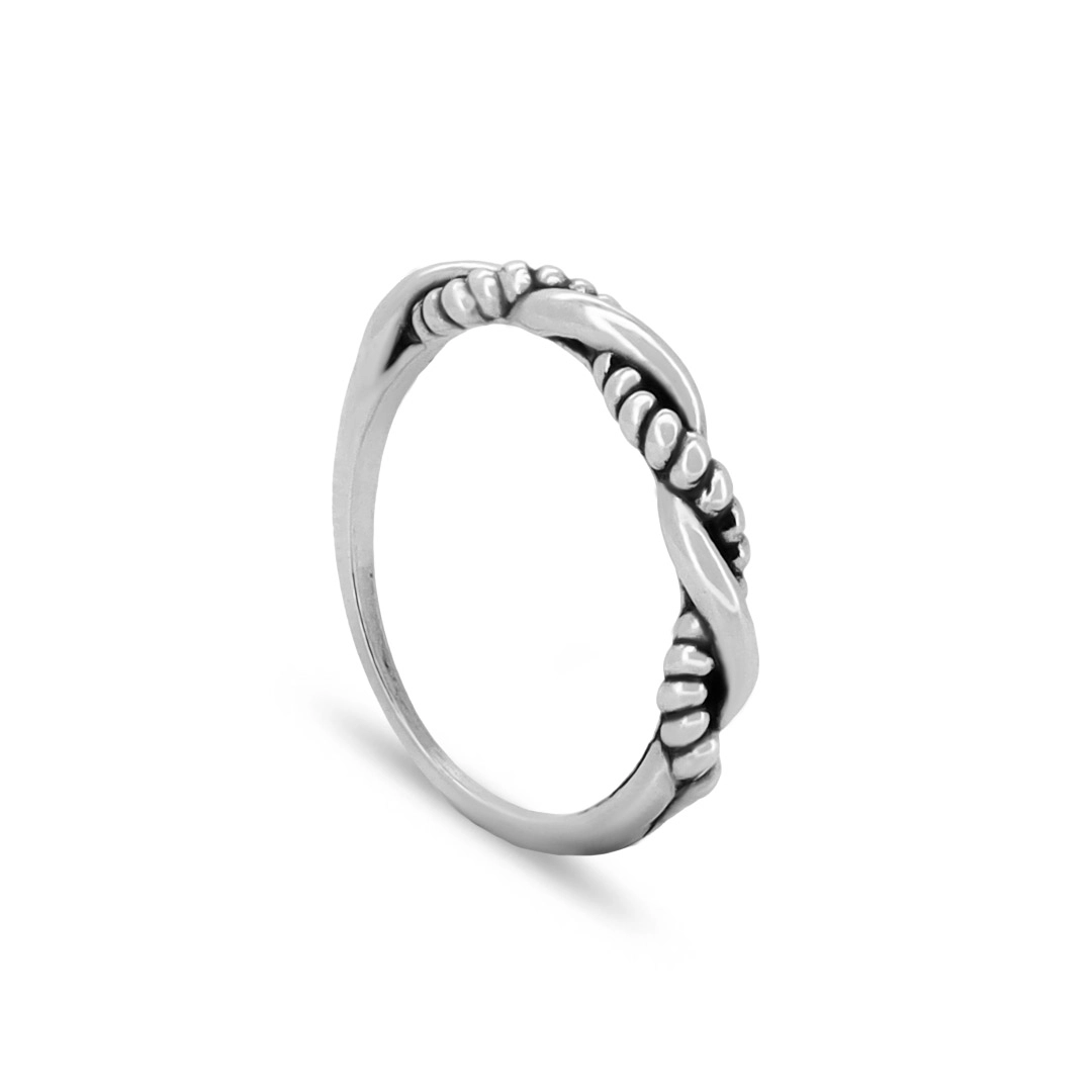 Anel De Prata Trançado com Trabalhado Envelhecido