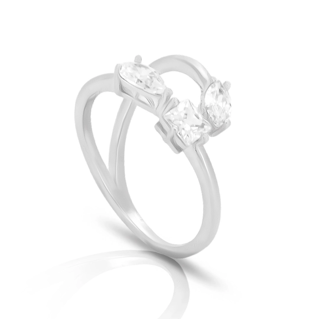 Anel vazado com zircônia gota, quadrada e navete.