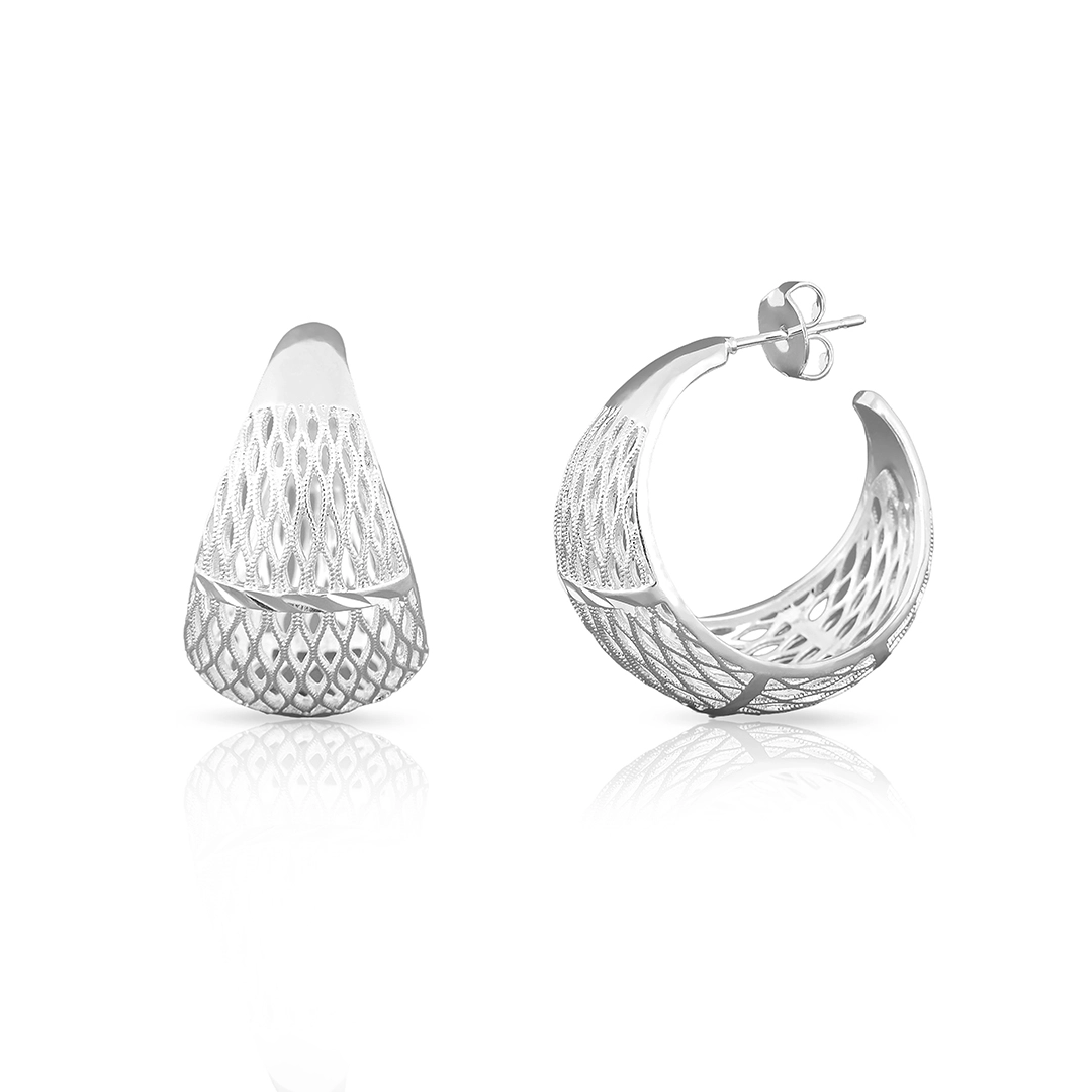 Brinco De Prata Leve Argola com Trabalhado Vazado