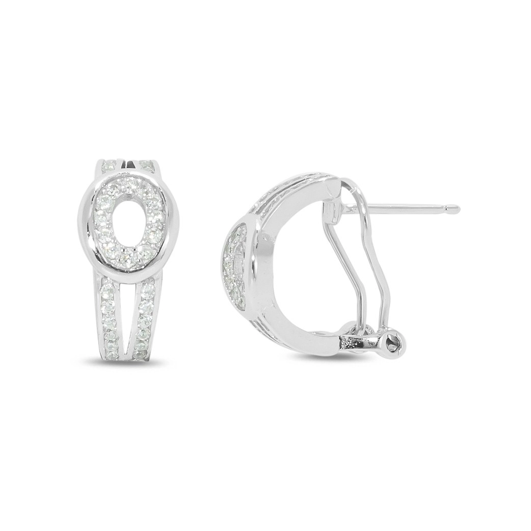 Brinco de Prata Oval com Trava e Zircônia Cristal