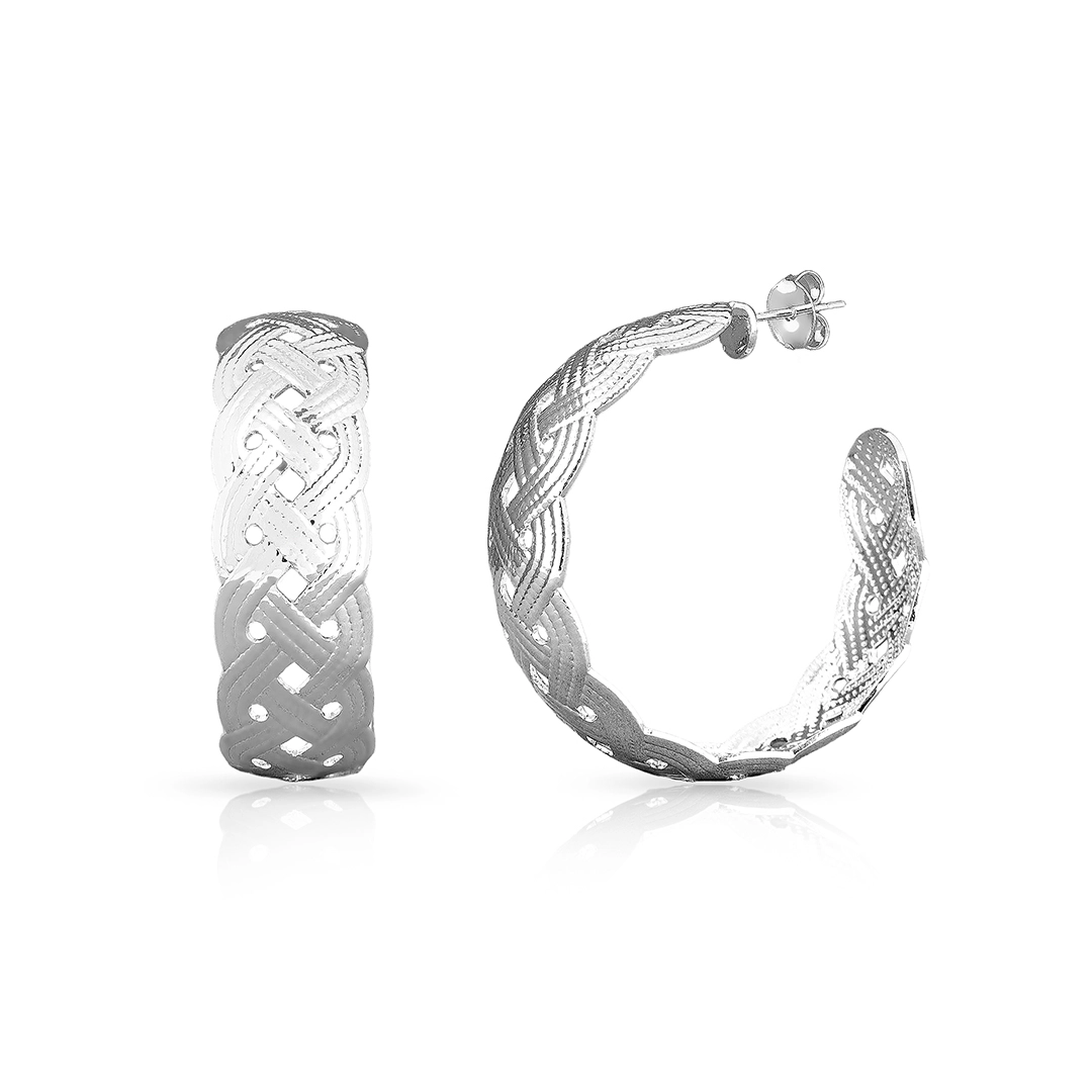 Brinco De Prata Leve Argola Trabalhada em Estilo Labirinto