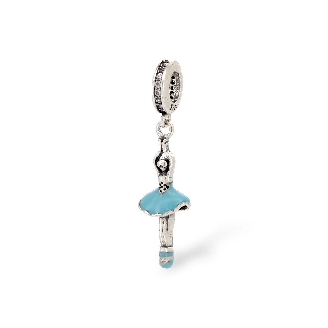 Berloque De Prata Bailarina com Resina Azul e Zircônia Cristal