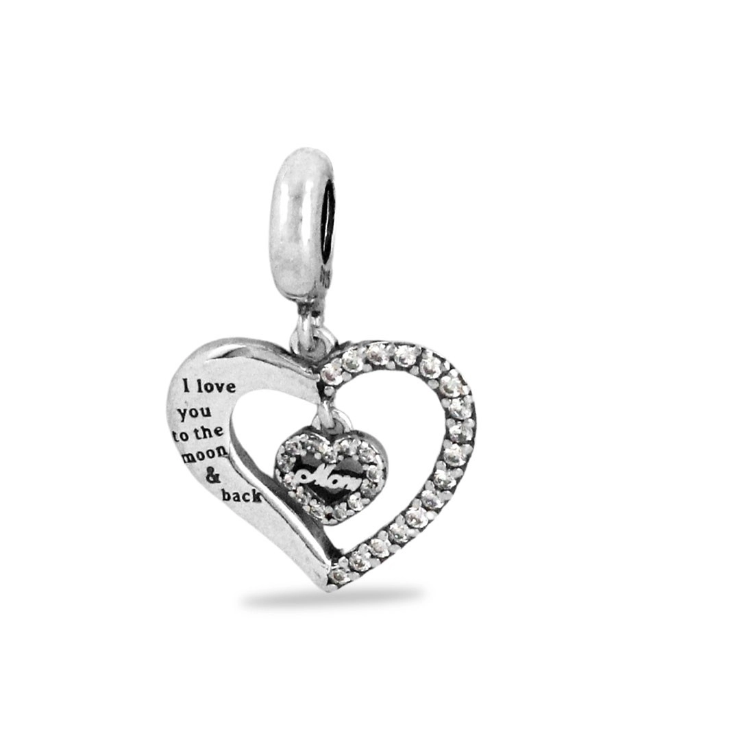 Berloque de Prata Balanço Coração Duplo com Zircônia Cristal